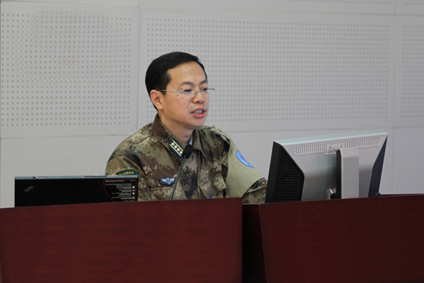 張國(guó)春在作關(guān)于兵棋系統(tǒng)改進(jìn)的報(bào)告(資料照片)。 新華社發(fā)(楊俊光 攝)
