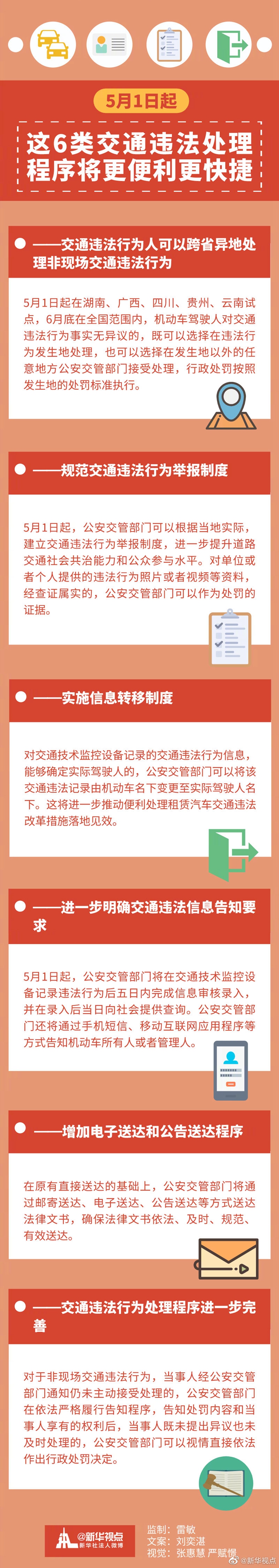 公安部修訂的《道路交通安全違法行為處理程序規(guī)定》將于5月1日起正式實(shí)施,實(shí)施后,處理交通違法將有6個(gè)變化,群眾辦事更便利、更快捷。詳情請(qǐng)看↓