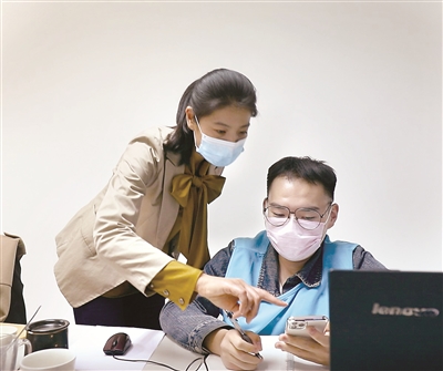 圖為張曉菲(左)在抗疫工作一線(xiàn)。