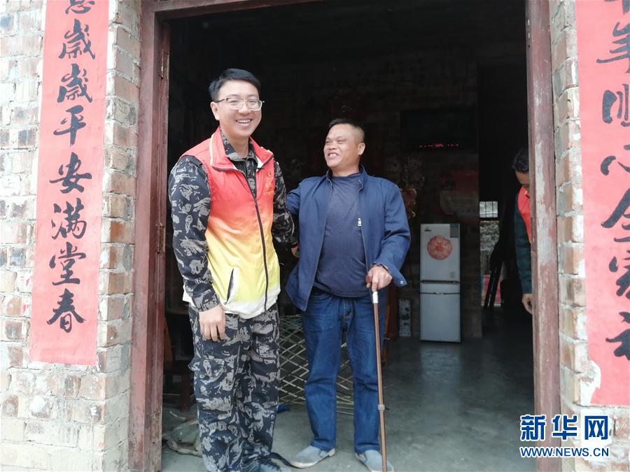 結(jié)束入戶調(diào)查后,廣西田林縣八渡瑤族鄉(xiāng)六林村駐村第一書記牟海迪(左)與貧困戶告別(4月24日攝)。 新華社記者 王軍偉 攝