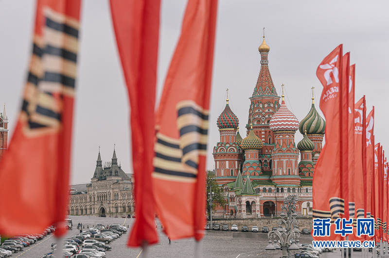 5月4日,在俄羅斯首都莫斯科,紅場附近道路裝飾著慶祝勝利日的旗幟。俄羅斯總統(tǒng)普京4月16日宣布,因新冠疫情俄將推遲原定于5月9日舉辦的俄紀(jì)念衛(wèi)國戰(zhàn)爭勝利75周年閱兵式。 為遏制新冠疫情蔓延,3月30日起莫斯科和俄多城實(shí)施居家隔離制度。 新華社發(fā)(葉甫蓋尼·西尼岑攝)