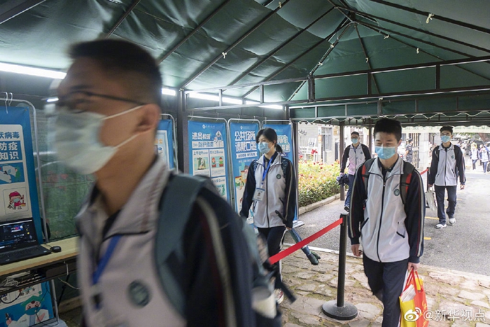 5月6日,武漢首批121所學校高三年級正式復學,學生返校上課。據(jù)了解,開學前,所有校園均開展了衛(wèi)生清潔和預防性消殺工作,所有學生返校前須進行健康檢測。第一批復學學校121所,包括普通高中學校83所和中職學校38所。(記者 熊琦 樂文婉)