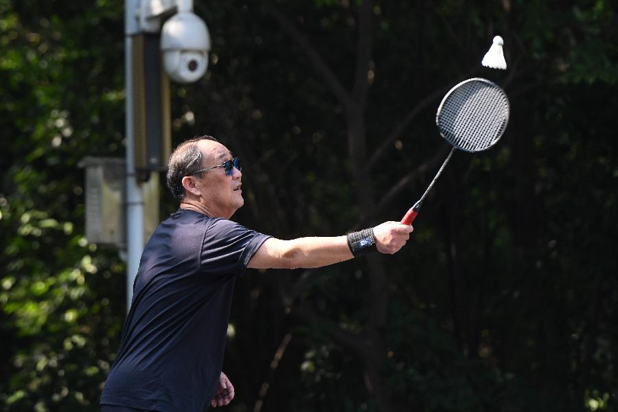 5月3日,一位市民在合肥市環(huán)城公園內(nèi)打羽毛球。 當(dāng)日是“五一”假期第三天,合肥市民紛紛來到戶外,健身休閑,樂享假期。 新華社記者 張端 攝