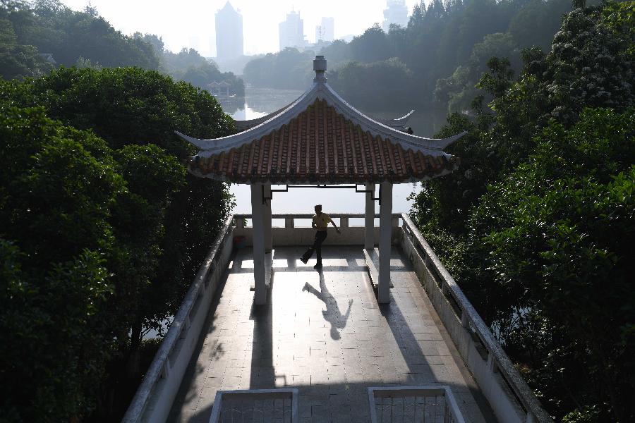 5月3日,市民在合肥市環(huán)城公園內(nèi)晨練。 當(dāng)日是“五一”假期第三天,合肥市民紛紛來到戶外,健身休閑,樂享假期。 新華社記者 張端 攝