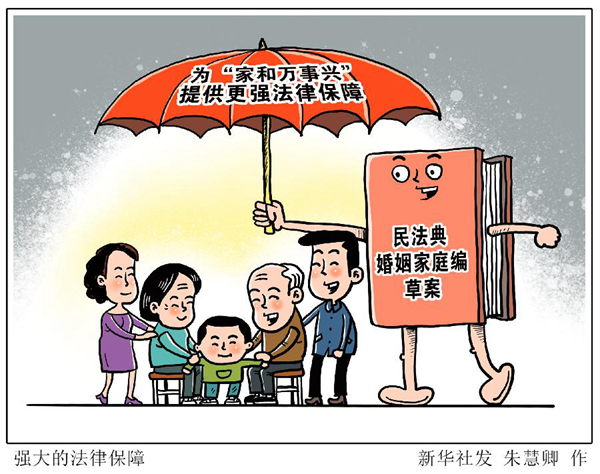 常言道:“家和萬事興”。個(gè)人婚姻家庭關(guān)系的和睦與否,與全社會的和諧穩(wěn)定息息相關(guān)。從注重“家風(fēng)”建設(shè),到加大權(quán)益保護(hù)力度,即將提請全國人代會審議的民法典草案,是我國婚姻家庭立法進(jìn)程中的重要里程碑。