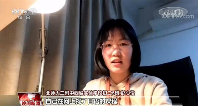 北師大二附中西城實驗學校初二5班 彭心怡:在這段時間里,自己在網(wǎng)上找了日語的課程,跟老師一對一學習。我希望大家也可以合理安排自己的學習內(nèi)容,好好利用時間。