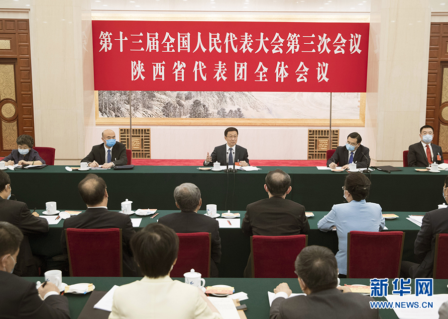 5月22日,中共中央政治局常委、國務院副總理韓正參加十三屆全國人大三次會議陜西代表團的審議。 新華社記者 王曄 攝