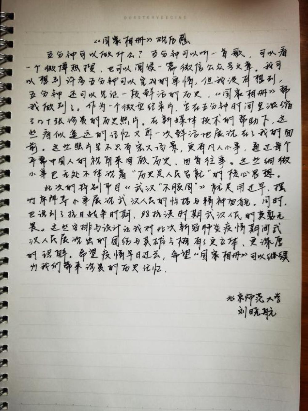 ↑北京師范大學(xué)學(xué)生劉曉航的觀后感