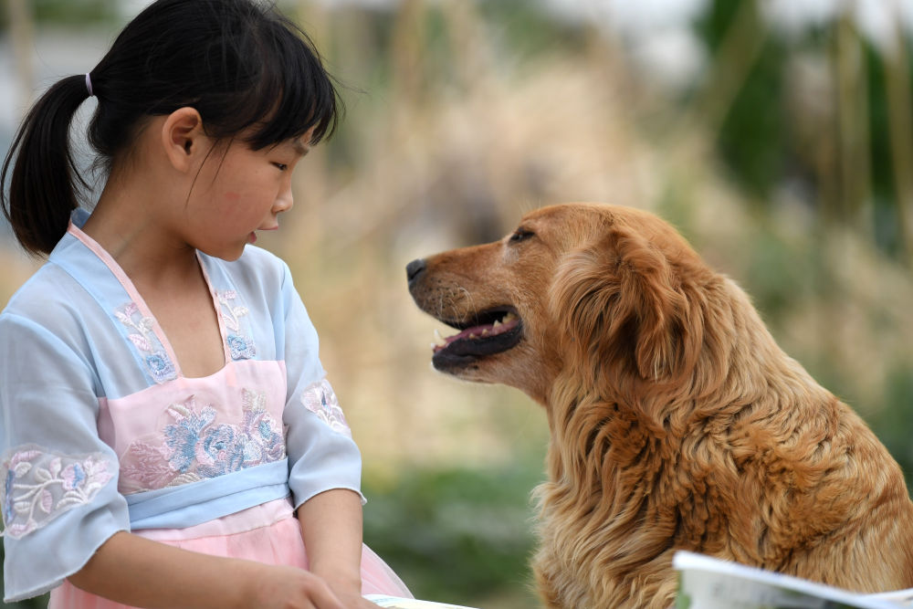 ↑?小思揚和同學家的狗玩耍。