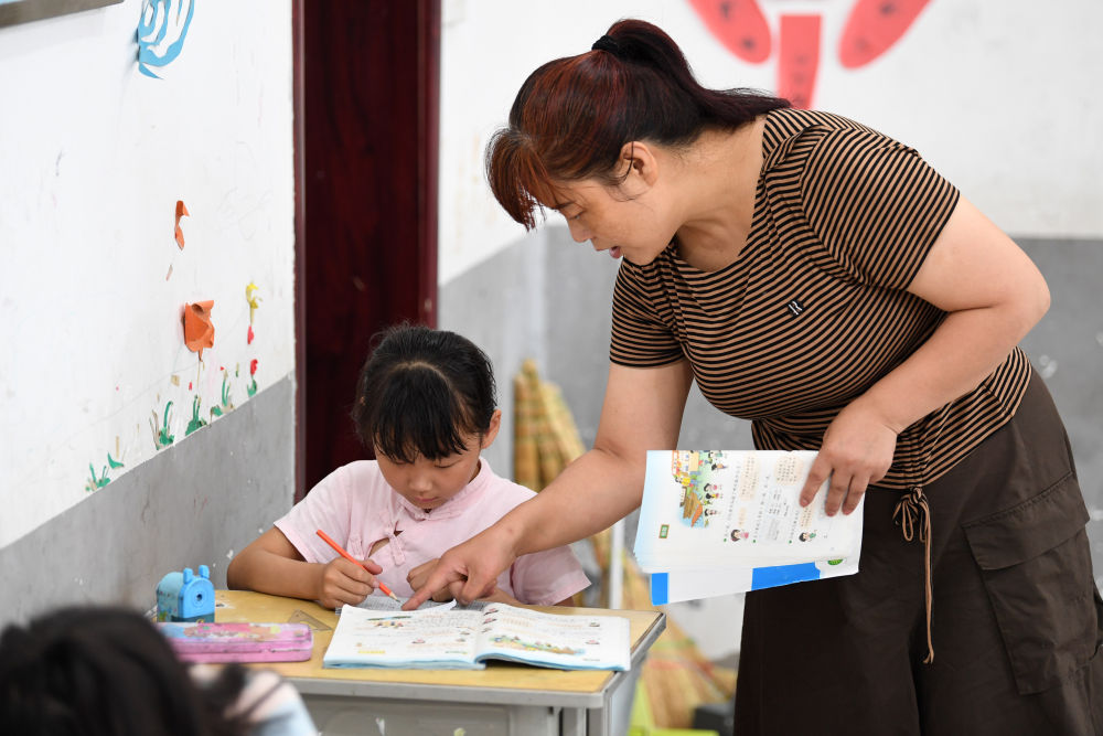 ↑?鄭加衛(wèi)在輔導小思揚學習。