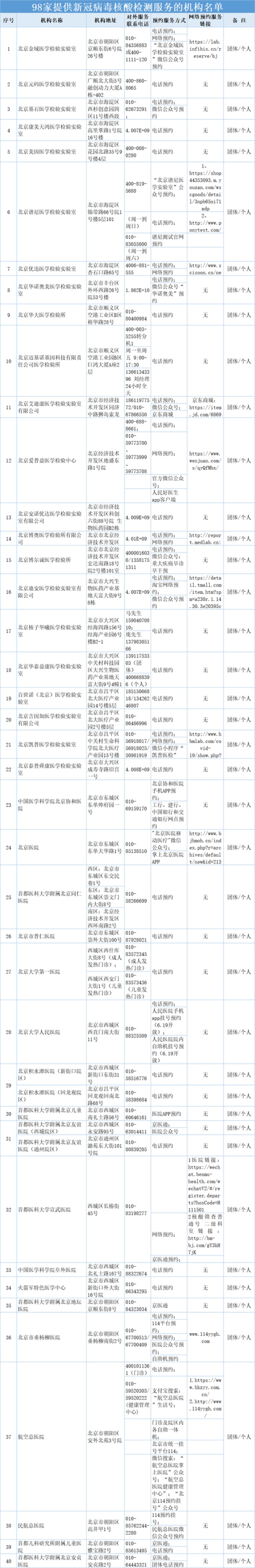 2020年4月15日、5月11日,我市分別公布了46所和21所,面向團體和個人提供新冠病毒核酸檢測服務的醫(yī)療衛(wèi)生機構。截至6月13日,我市又新增31家具備核酸檢測能力的醫(yī)療衛(wèi)生機構,可面向團體和個人提供新冠病毒核酸檢測服務。目前我市具備核酸檢測能力的機構達到98所,每天最大檢測能力已達9萬多人。根據防控工作需要,為便于群眾預約查詢,我委匯總了檢測機構的網絡預約鏈接和APP、微信公眾號等信息?,F將面向社會團體和個人提供新冠病毒核酸檢測服務的98所醫(yī)療衛(wèi)生機構名單予以公布,有檢測需求的單位和個人,請?zhí)崆斑M行預約。
