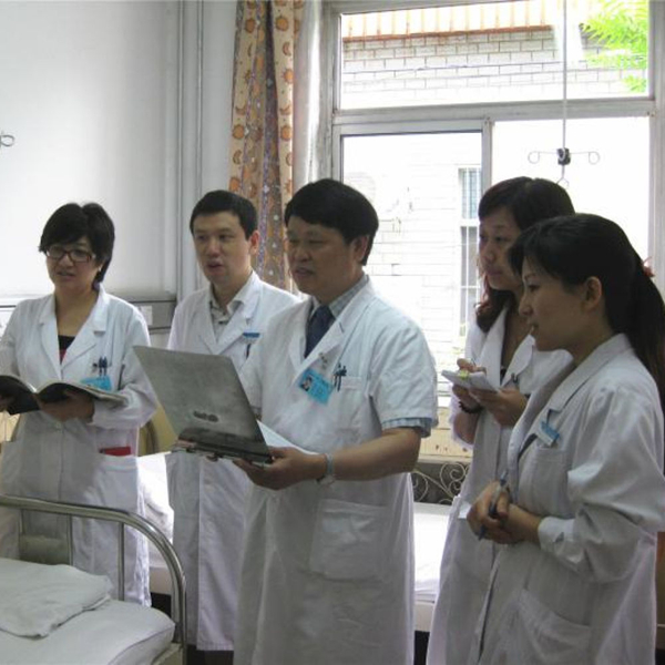 中國(guó)醫(yī)學(xué)科學(xué)院腫瘤醫(yī)院徐兵河教授(右三)、馬飛教授(右四)攜治療團(tuán)隊(duì)在病房查問(wèn)病人康復(fù)情況。(圖片由受訪者提供)