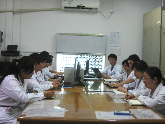 中國(guó)醫(yī)學(xué)科學(xué)院腫瘤醫(yī)院徐兵河教授(右五)、馬飛教授(右三)帶領(lǐng)科室共同討論乳腺癌診療中的疑難病例。(圖片由受訪者提供)