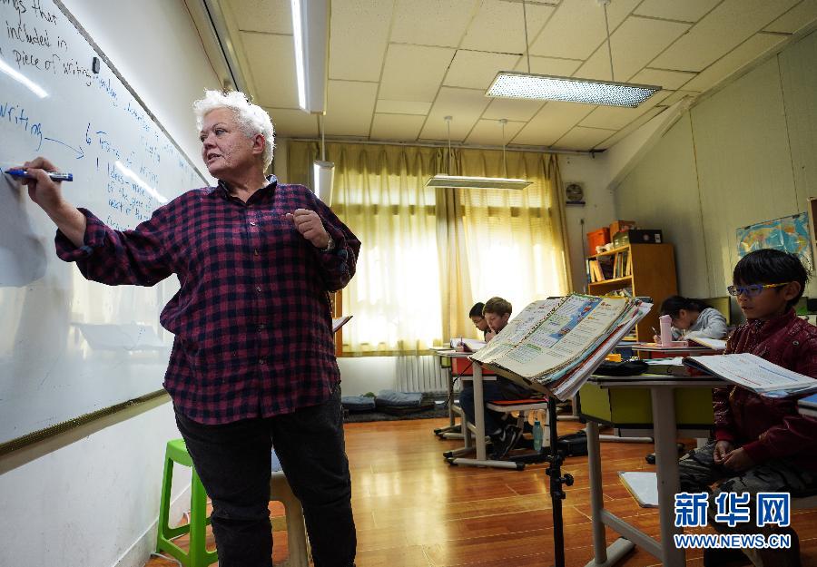 一名外籍老師在西寧市外籍人員子女學(xué)校內(nèi)為孩子們上課(2019年11月4日攝)。 新華社記者吳剛攝