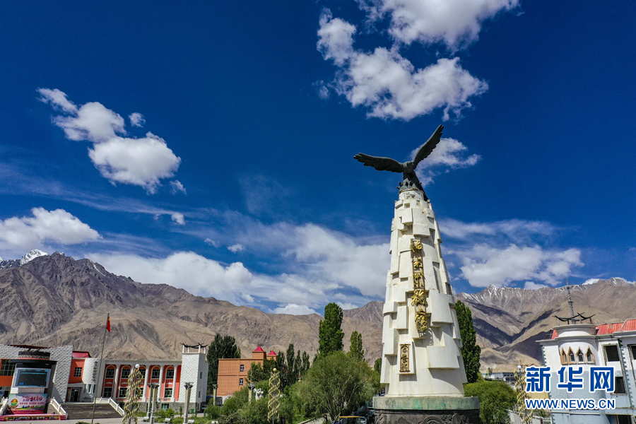 在帕米爾高原上的塔什庫爾干塔吉克自治縣(以下簡(jiǎn)稱“塔縣”),有用“世界最高國門”紅其拉甫口岸和“冰山之父”慕士塔格峰命名的兩條路。在紅其拉甫路和慕士塔格路的交會(huì)處,矗立著一座高約30米的“帕米爾雄鷹”雕塑。