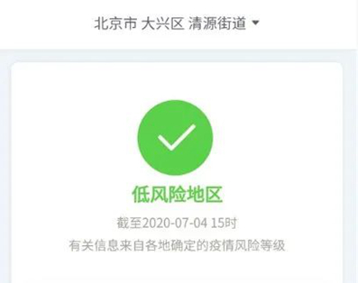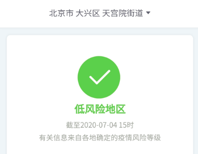 北京日報記者從國務(wù)院客戶端小程序“疫情風險等級”了解到,截至7月4日15時,北京市大興區(qū)天宮院街道、清源街道由中風險地區(qū)調(diào)整為低風險地區(qū);北京市大興區(qū)黃村(地區(qū))鎮(zhèn)由高風險降級為中風險。