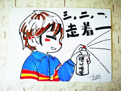 高二時(shí),這一傳統(tǒng)得以延續(xù)。今年,從給學(xué)長(zhǎng)們吶喊加油,輪到了為自己和同學(xué)們鼓勁打氣。在漫畫的創(chuàng)作風(fēng)格上,張亦萱也做了調(diào)整?!爸皭坌牡脑貢?huì)更多一些,今年會(huì)更活潑一些,希望能讓人看了更輕松?!睆堃噍嬲f,自己從小學(xué)開始學(xué)美術(shù),對(duì)她來(lái)說,畫畫不難,難的是創(chuàng)意和構(gòu)思。最開始畫的時(shí)候,想法很多,從網(wǎng)上獲得了不少靈感;后來(lái),為了不跟別人重復(fù),她開始翻各種表情包,力求好玩兒有趣。