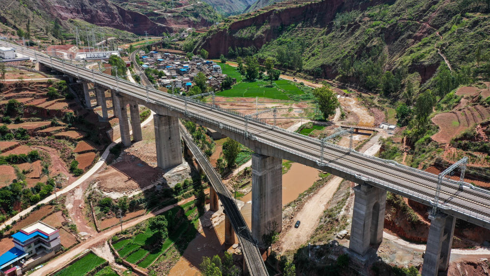 這是采用“轉(zhuǎn)體施工法”建設的大樹村龍川江三線大橋(上)一景,該橋單體轉(zhuǎn)體重量7350噸,總重量14700噸(無人機照片,6月23日攝)。新華社記者 胡超 攝