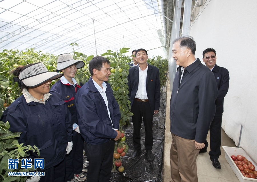7月6日至8日,中共中央政治局常委、全國政協(xié)主席汪洋在西藏調(diào)研。這是7月7日,汪洋在日喀則白朗縣察看果蔬種植,與務(wù)工群眾交流。 新華社記者 黃敬文 攝