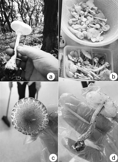 圖為江蘇患者食用的有毒蘑菇,a、b為歐式鵝膏菌,c、d為肉褐鱗環(huán)柄菇。受訪者供圖