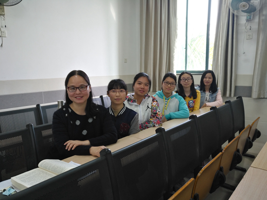 黃燈(左一)給2015級學(xué)生上課。受訪者提供
