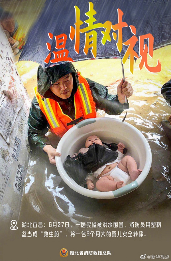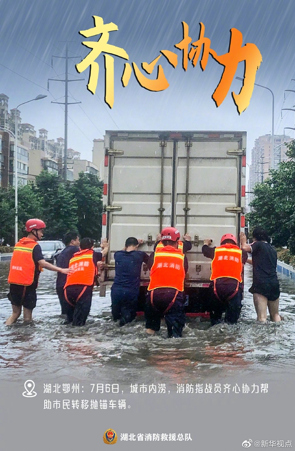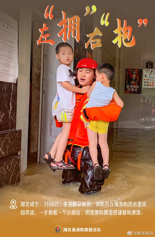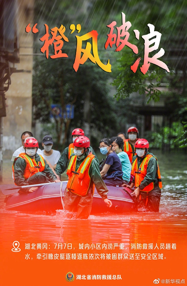 湖北近期遭遇持續(xù)強降雨天氣,部分地區(qū)出現(xiàn)洪澇災(zāi)害。洪水襲來,在救援現(xiàn)場奔波忙碌的消防救援人員,始終沖在一線,“橙”風(fēng)破浪,守護(hù)著人民群眾的生命和財產(chǎn)安全。這抹“橙”,成為災(zāi)區(qū)人民心中最溫暖的底色。向“逆行者”致敬?。ㄓ浾吡航◤姡?/p>