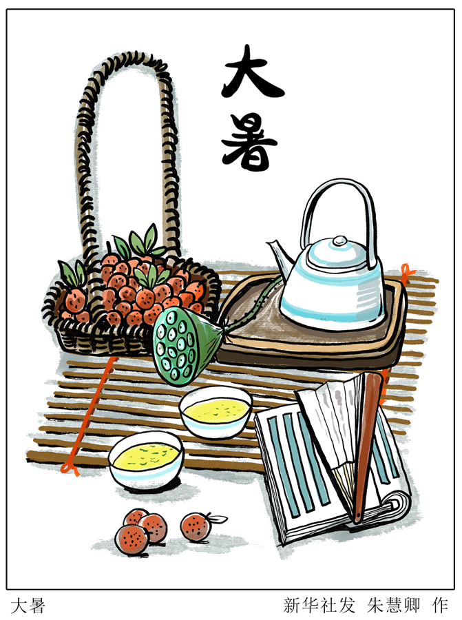 “赤日幾時過,清風無處尋”。“大暑”是一年中最熱的一個節(jié)氣,古籍《月令七十二候集解》中解釋說:“暑,熱也。就熱之中分為大小,月初為小,月中為大”。酷熱多雨、高溫潮濕是此時節(jié)的天氣特點,“桑拿天”幾乎成為常態(tài)。