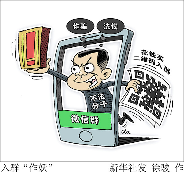 “新華視點(diǎn)”記者調(diào)查發(fā)現(xiàn),微信群的二維碼在網(wǎng)絡(luò)上被倒賣,一些不法分子借此實(shí)施詐騙或洗錢。