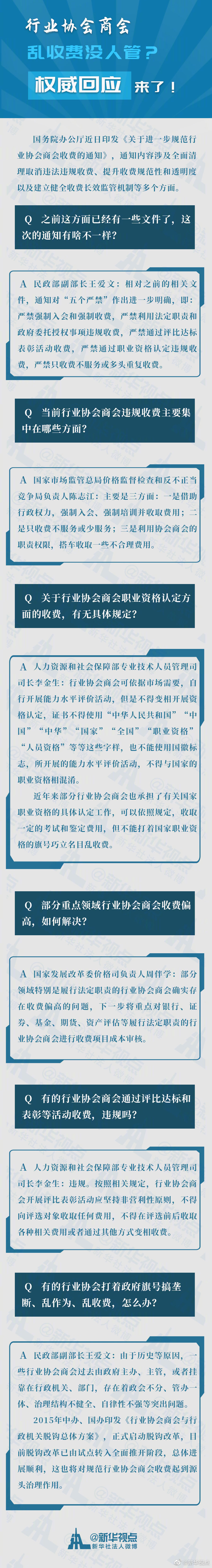 國務(wù)院辦公廳近日印發(fā)《關(guān)于進一步規(guī)范行業(yè)協(xié)會商會收費的通知》,通知有啥亮點?行業(yè)協(xié)會商會亂收費、高收費問題如何解決?評比達標、表彰活動收費是否違規(guī)?......民政部等相關(guān)部門負責(zé)人給出權(quán)威回應(yīng)。