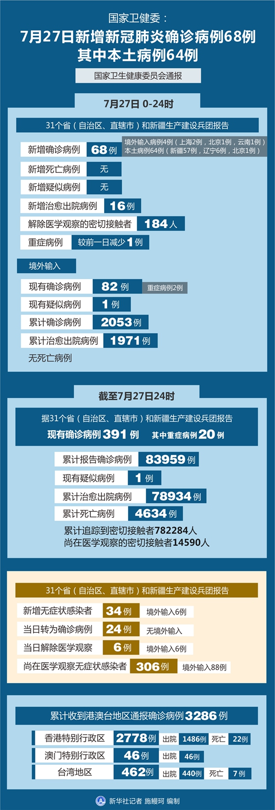 截至7月27日24時新疆(含兵團)新型冠狀病毒肺炎疫情最新情況