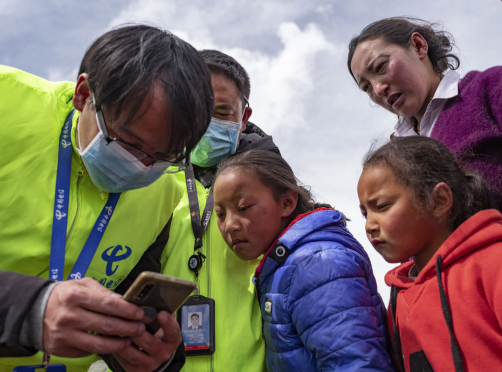 3月6日,中國(guó)電信集團(tuán)拉薩分公司當(dāng)雄電信局的技術(shù)人員在烏瑪塘鄉(xiāng)巴嘎村幫助村民調(diào)試無(wú)線網(wǎng)絡(luò),方便偏遠(yuǎn)牧區(qū)學(xué)生上好網(wǎng)課(晉美多吉/攝)