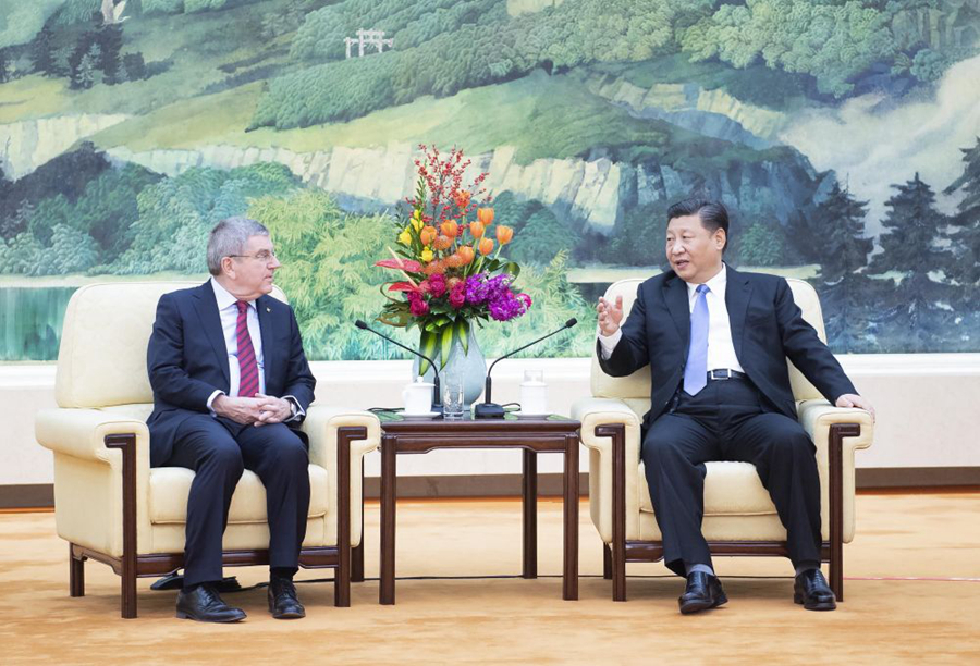 2019年1月,北京,習(xí)近平會見國際奧委會主席巴赫。(新華社記者李濤 攝)