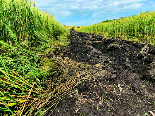 記者現(xiàn)場看到,陳巴爾虎旗特尼河林場大片大片麥田、油菜田里,被鏟出一道道觸目驚心、黑綠相間的“斑馬線”。“再有十多天就要收割了,現(xiàn)在毀了實在可惜!”附近群眾說。