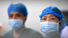 8月17日,甘肅省第二人民醫(yī)院介入醫(yī)學科主任醫(yī)師余新林在護士的幫助下佩戴鉛帽,準備進行手術(shù)。新華社記者 朱藝琳 攝