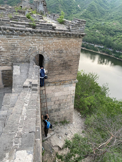 他說,登野長城是不允許的,近年來,北京市文物局也加大了巡查力度,設(shè)置了一些負(fù)責(zé)長城環(huán)保的公益志愿者和長城保護(hù)工作人員巡山。如果被發(fā)現(xiàn),梯子肯定要被鄉(xiāng)鎮(zhèn)沒收。據(jù)稱,登城所用的梯子就被鄉(xiāng)鎮(zhèn)沒收了3次。為保險(xiǎn)起見,他會早晨放梯,晚上再撤掉。