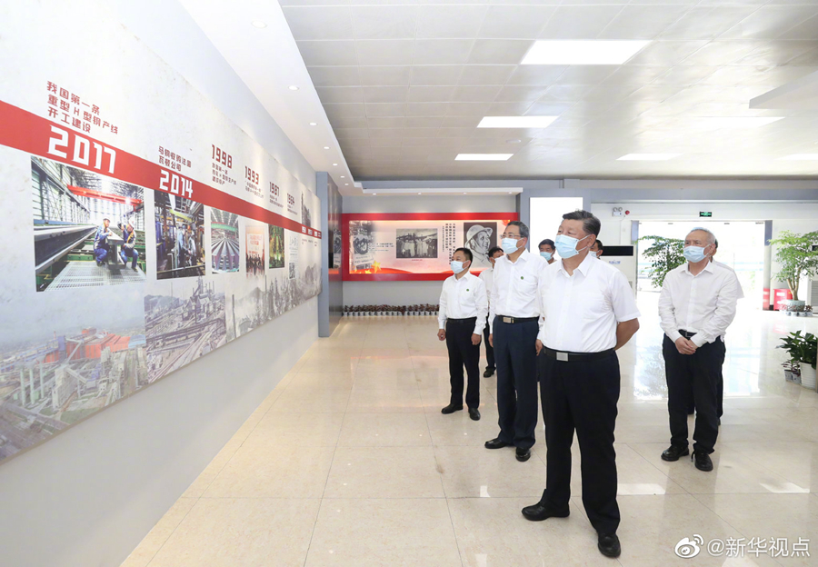 19日上午,正在安徽考察調(diào)研的習(xí)近平總書記走進(jìn)中國寶武馬鋼集團優(yōu)質(zhì)合金棒材車間,冒著高溫察看生產(chǎn)運行情況,并同勞動模范、工人代表親切交流。習(xí)近平指出,在抗擊新冠肺炎疫情過程中,馬鋼較早復(fù)工復(fù)產(chǎn),實現(xiàn)了產(chǎn)量、營銷收入同比雙升,展現(xiàn)了國有經(jīng)濟的強大韌性。他勉勵馬鋼在長三角一體化發(fā)展中把握機遇、順勢而上,特別是要把自身改革發(fā)展同長三角一體化發(fā)展有機結(jié)合銜接,力爭在長三角一體化發(fā)展中不斷發(fā)展壯大自己,也為長三角一體化發(fā)展作出自己的貢獻(xiàn)。(文字記者:張曉松 攝影記者:鞠鵬 王曄 燕雁)