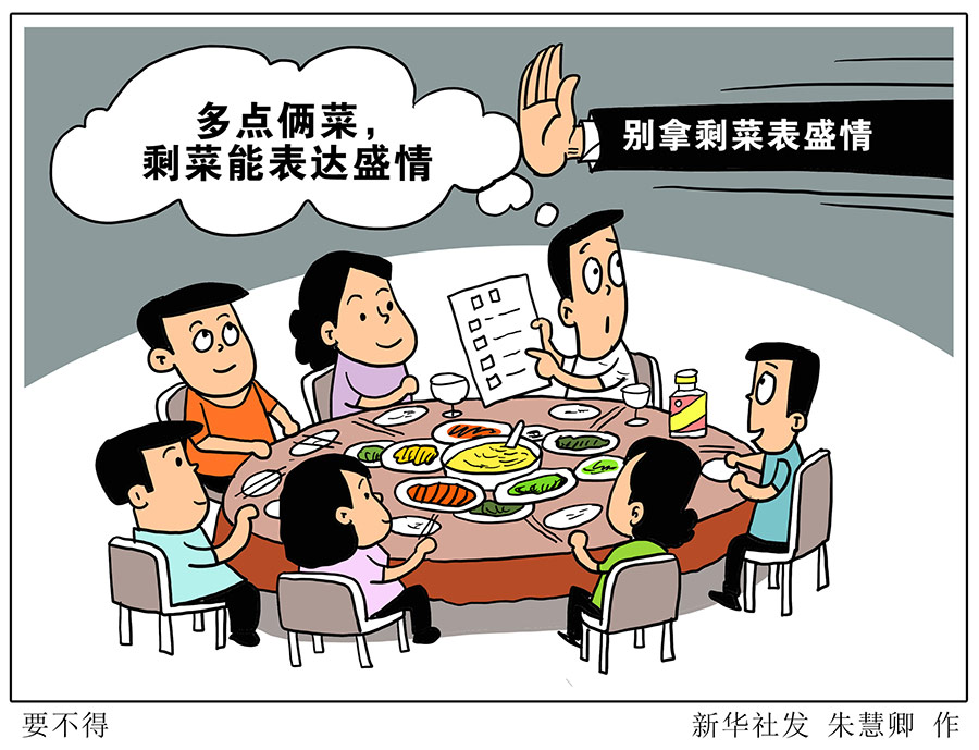 習近平總書記近日作出重要指示,強調(diào)堅決制止餐飲浪費行為切實培養(yǎng)節(jié)約習慣,在全社會營造浪費可恥節(jié)約為榮的氛圍。這一重要指示發(fā)人深省、飽含啟示。在日常生活中,主客散席時留下半桌剩菜的場面并不少見,寧可點多、絕不能少,這種以剩菜表達盛情的心態(tài)和行為要不得。