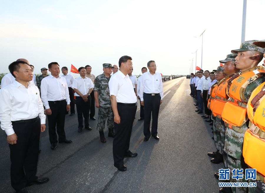 大堤上,習(xí)近平親切看望慰問了在防汛抗洪救災(zāi)斗爭中犧牲同志的家屬、防汛抗洪一線人員、先進(jìn)典型代表和參加抗洪搶險的部隊官兵,并向全國奮戰(zhàn)在防汛抗洪救災(zāi)一線的同志們表示誠摯的問候。他強(qiáng)調(diào),今年入汛以來,南北方江河湖泊接連出現(xiàn)超警戒水位險情。廣大干部群眾和人民解放軍、武警官兵堅決響應(yīng)黨和政府號召,發(fā)揚(yáng)不怕累苦、不怕疲勞、不怕犧牲的精神斗志,堅守在防汛抗洪救災(zāi)第一線,涌現(xiàn)了許多先進(jìn)典型和感人事跡,展現(xiàn)了中國人民眾志成城、頑強(qiáng)拼搏、敢于勝利的英雄氣概,書寫了洪水無情人有情的人間大愛。黨和人民感謝你們!