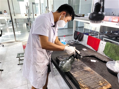 首都博物館研究員何海平,在工作現(xiàn)場負責指導工作。在他看來,現(xiàn)在很多行業(yè)都已被機器所替代,但文物修復無法完全通過機器完成。一個重要原因,就是這項工作有藝術(shù)性的要求,需要修復師懂藝術(shù)、理解藝術(shù)。