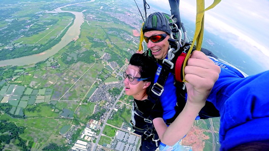 更瘋狂的是去年6月,方堅(jiān)澤嘗試了一次跳傘。那天教練帶著他從4千米的高空躍下,當(dāng)毫發(fā)無(wú)損地回到地面,他對(duì)人生又有了更多的感悟:挫折對(duì)人生而言微不足道,奮斗和努力會(huì)讓人活得出彩。