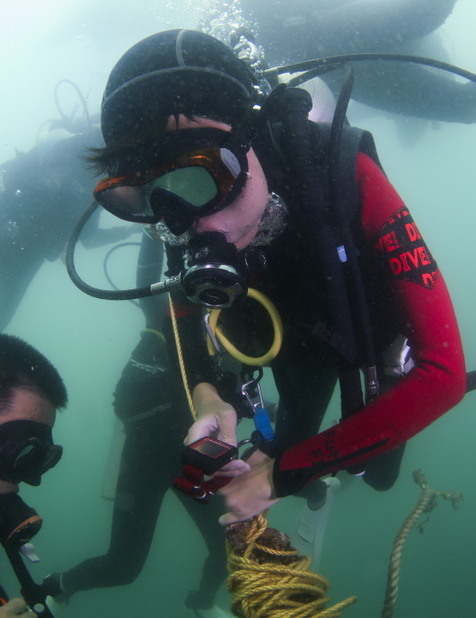 ▲方堅(jiān)澤進(jìn)行潛水結(jié)束后的安全停留。