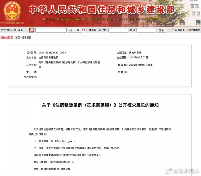 《住房租賃條例(征求意見稿)》向社會公開征求意見-新華網(wǎng)