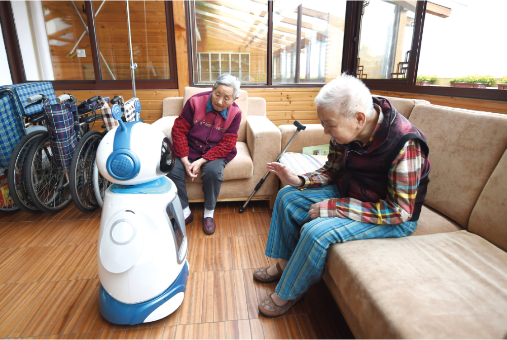 “傳音入密”的廣場(chǎng)舞神器,游戲機(jī)一樣的康復(fù)機(jī)器人,“床椅一體化機(jī)器人”,還有車鑰匙大小、可定位可報(bào)警還可社交的智能助老終端機(jī)……以互聯(lián)網(wǎng)、物聯(lián)網(wǎng)、大數(shù)據(jù)、人工智能為代表的現(xiàn)代信息技術(shù),正在推動(dòng)新時(shí)代養(yǎng)老服務(wù)業(yè)“彎道超車”。