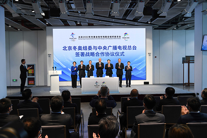 在北京冬奧會倒計時500天之際,2020年9月22日上午,中央廣播電視總臺與北京冬奧組委簽署《相約北京系列冬季體育賽事轉播工作框架合同》和《北京冬奧會電視轉播科技創(chuàng)新應用及科技冬奧重點專項技術協同戰(zhàn)略合作框架協議》,標志著雙方冬奧宣傳轉播報道、科技創(chuàng)新引領合作進入新階段。