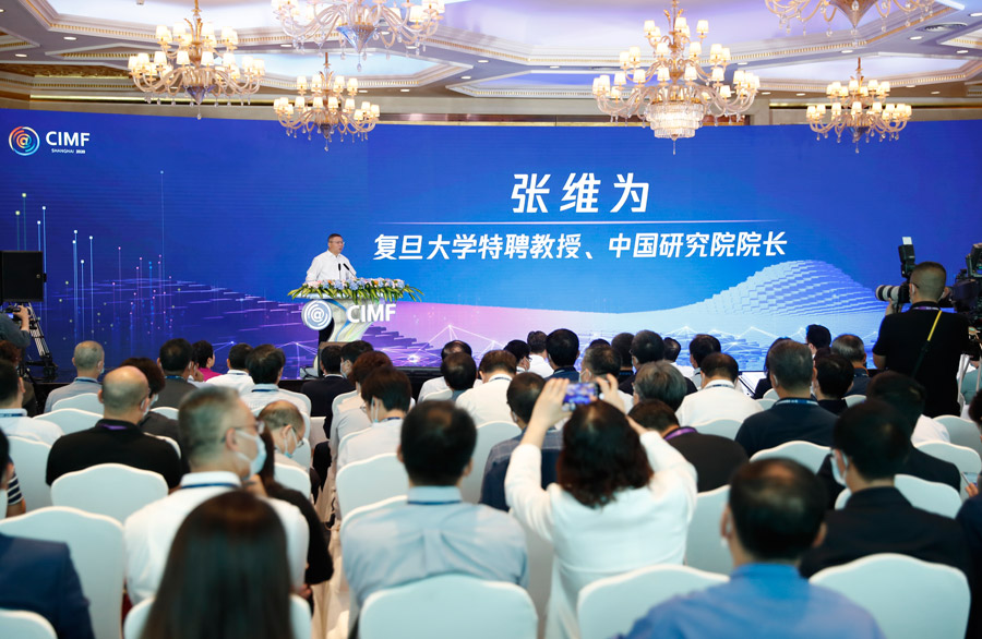 ??? 9月27日,2020中國網(wǎng)絡(luò)媒體論壇內(nèi)容論壇在上海舉行,各界嘉賓圍繞“后疫情時代網(wǎng)絡(luò)傳播的‘變’與‘新’”這一主題開展探討和交流。圖為復旦大學中國研究院院長、特聘教授張維為作主題演講。