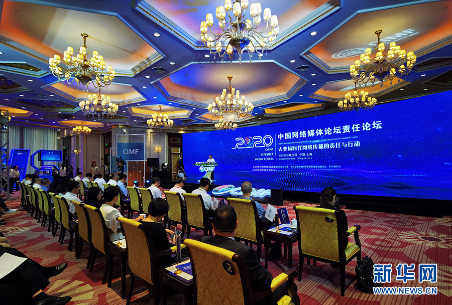 9月28日,2020中國網(wǎng)絡(luò)媒體論壇責(zé)任論壇在上海舉行,各界嘉賓圍繞“大變局時代網(wǎng)絡(luò)傳播的責(zé)任與行動”這一主題開展探討和交流。圖為論壇現(xiàn)場。