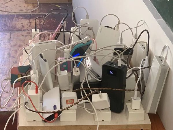 每間教室的講臺(tái)旁邊都放著一排插線板,上面插滿了充電寶。據(jù)學(xué)生介紹,學(xué)校封禁了宿舍內(nèi)的插電孔,他們只能將充電寶在教室充滿電后帶回宿舍用?!坝袝r(shí)候教室里充電的地方滿了,要么排隊(duì),要么去超市花錢充?!庇捎谒奚釠]插電孔、沒網(wǎng),這里的大學(xué)生幾乎沒人用電腦。小許說,學(xué)校說宿舍不能充電是為了防火安全,但是如此管理未免太過“簡單粗暴”。