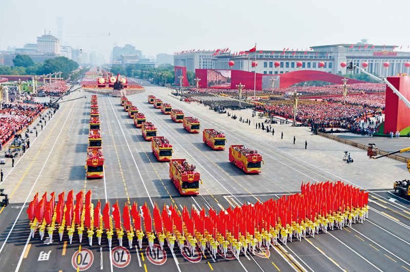 70年來,在中國共產(chǎn)黨堅(jiān)強(qiáng)領(lǐng)導(dǎo)下,中國人民勇于探索、不斷實(shí)踐,成功開辟了中國特色社會主義道路,推動中國特色社會主義進(jìn)入新時(shí)代,中國大踏步趕上了時(shí)代,中國人民意氣風(fēng)發(fā)走在了時(shí)代前列!