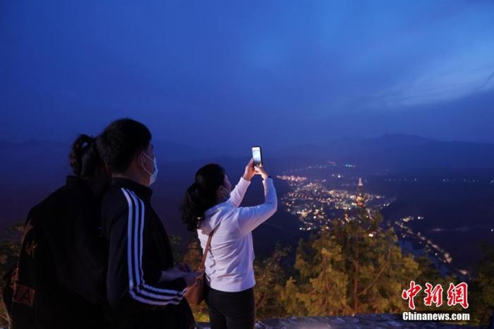 資料圖:游客在北京古北水鎮(zhèn)景區(qū)司馬臺(tái)長(zhǎng)城夜游。 記者 蘇丹 攝