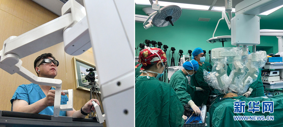 當(dāng)日,青島大學(xué)附屬醫(yī)院醫(yī)療團(tuán)隊(duì)利用5G技術(shù)和國(guó)產(chǎn)原研手術(shù)機(jī)器人,成功完成一例超遠(yuǎn)程泌尿外科手術(shù),為身處貴州省安順市西秀區(qū)人民醫(yī)院的膀胱癌患者實(shí)施了膀胱根治性切除手術(shù)。新華社發(fā)